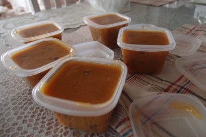 냄비에 과육 1kg를 넣고 물 3컵(660ml)을 부어준 뒤 설탕 2큰술 더해 뚜껑 덮고 센 불에서 끓기 시작하면 중불로 불을 낮춰 15~20분 정도 푹 잘 익도록 끓여준다. 불을 끄고 곱게 핸드블랜더로 갈아준다.