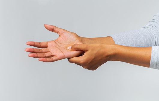 - 손이 무감각하고 손을 꽉 쥐려고 하면 때때로 타는 듯한 통증이 나타난다.