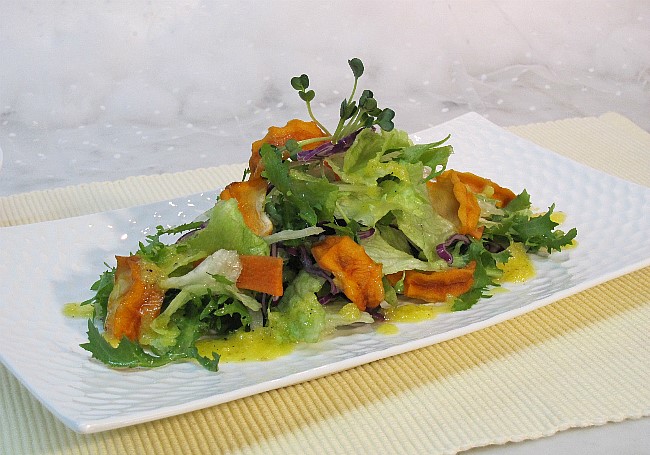 3. 샐러드용 야채를 씻어 담고 홍시와 곶감을 올린다.