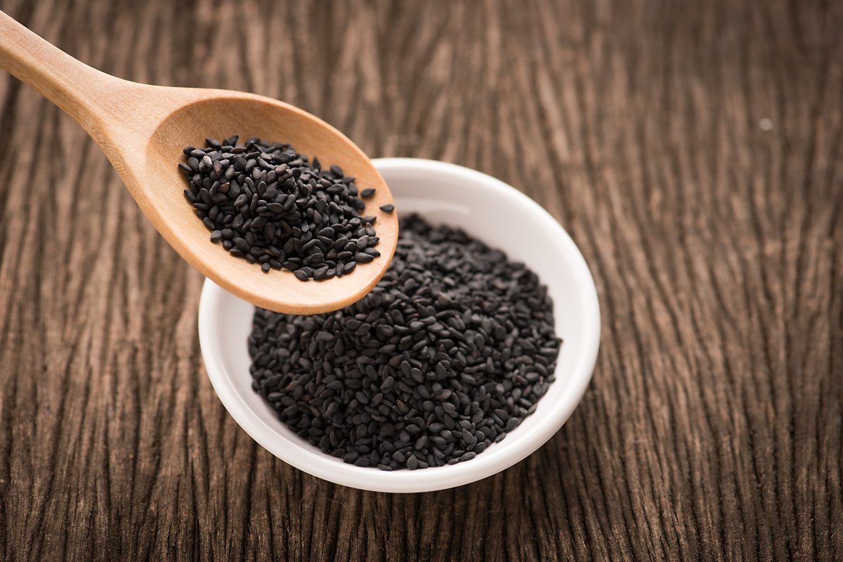검은깨에는 원기와 정력에 좋다. 한의학에서는 검은깨와 같은 검은색을 가진 식품이 신장에 작용해서 정기를 더 강화시켜 주기 때문이다. 실제로 아연, 셀레늄, 마그네슘, 망간, 청 등과 같은 정력에 좋은 성분들이 검정깨 속에 더 풍부하다고 한다.