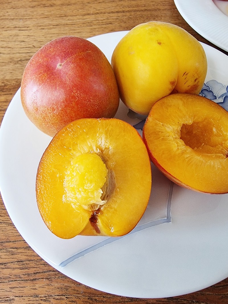 과피는 붉은색이며, 육질은 살구와 비슷하고, 과육은 유백색, 신맛이 적고 당도가 높다.