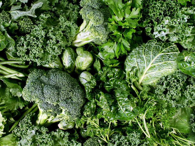 시금치, 케일, 콜라드, 양배추, 브로콜리, 상추 같은 녹색 계열의 채소에는 비타민K가 풍부하다. 비타민K가 풍부하면 우리 체내에서 동맥을 보호하고 혈압을 낮추면서 혈관을 청소하는 역할을 담당한다. 또한 잎이 많은 녹색 계열의 채소를 꾸준히 섭취할 경우 심장 관련 방병률을 16%까지 낮추는 것으로 확인되었다.