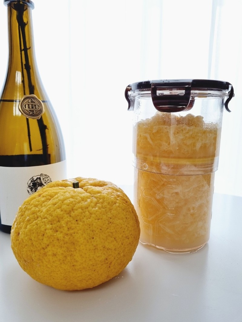 3. 하귤을 세척한 후 겉껍질을 까준다. 하귤 껍질은 단단하고 두꺼워서 손으로만 끼니는 힘들고 오렌지 껍질을 깔 때처럼 꼭지 위아래 쪽을 잘라낸 뒤 하귤 가로로 잘라서 껍질을 까면 손쉽게 벗길 수 있다.