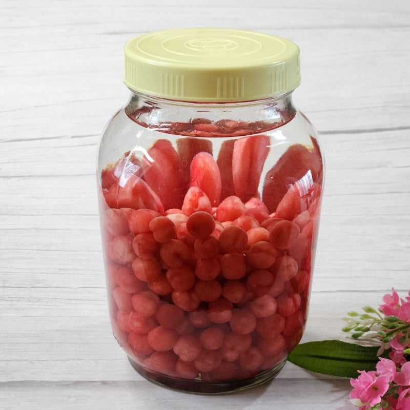 1. 먼저 앵두를 깨끗이 씻은 뒤에 소독된 유리병에 넣는다.
