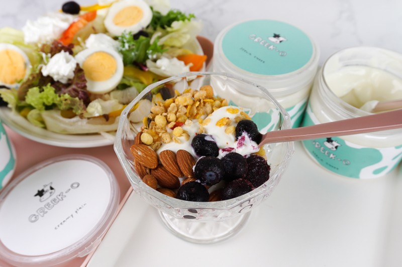 그릭 요구르트는 100g 당 130Kcal 정도로, 다소 열량이 높지만 높은 단백질 함유량과 포만감을 줘 다이어트에 도움이 되는 음식이다. 키위, 사과, 바나나 등 다른 저칼로리 과일과 함께 섭취하면 포만감이 높고 건강한 식단을 유지할 수 있다.