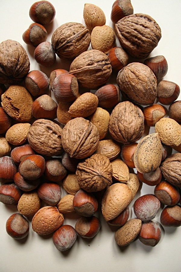아몬드, 호두 등의 견과류에는 리놀레산 등 불포화지방산이 풍부하게 들어있다. 불포화지방산은 혈관벽에 붙어있는 콜레스테롤의 산화를 예방해 준다. 견과류에 함유되어 있는 비타민E 같은 항산화 물질은 혈관 벽 노화 속도를 늦추는데 도움이 된다. 하루에 한줌 정도 섭취해 주는 것이 혈전예방에 도움이 된다.